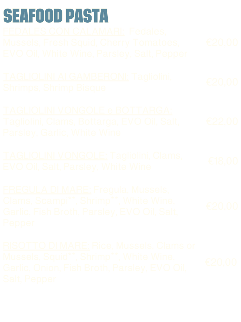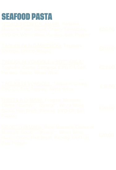 Our pasta is fresh and egg-free
